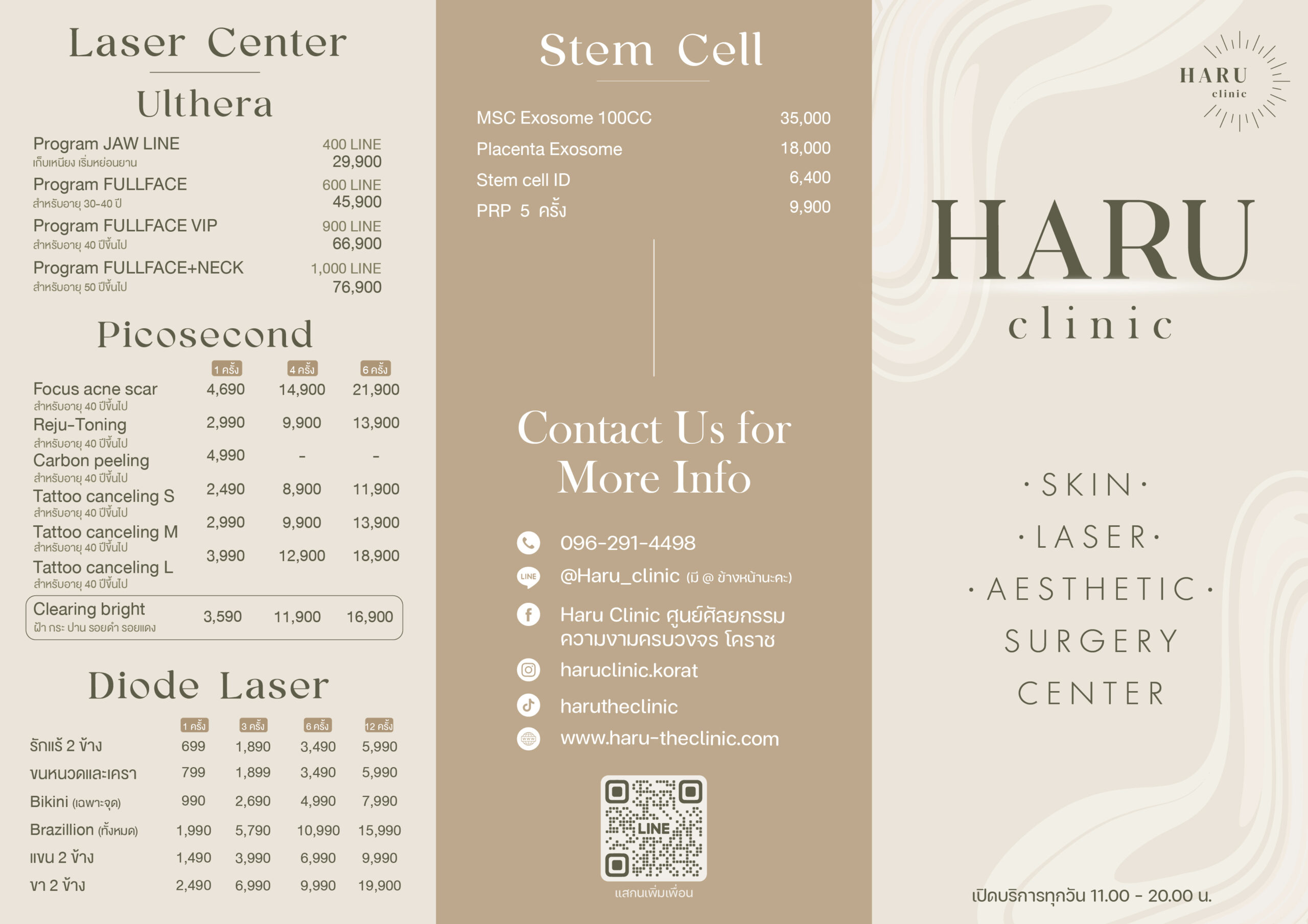 บริการของเรา OUR SERVICES ศัลยกรรมยกหน้า ซื้อเลยตอนนี้ ผ่าตัดขากรรไกร ซื้อเลยตอนนี้ ดึงหน้าผากไร้รอยแผล ซื้อเลยตอนนี้ โปรโมชั่น ติดต่อสอบถามเพิ่มเติม 096-291-4498 สนใจปรึกษาเราฟรี !! ปรึกษาแพทย์ผู้เชี่ยวชาญ HARU CLINIC คลินิกศัลยกรรมตกแต่งหน้าที่ดีสุด โดยหมอผู้ชำนาญด้านศัลยกรรมมากว่า 10 ปี มีชื่อเสียงเป็นอันดับหนึ่งในการทำศัลยกรรมให้สวยงามเหมือนไปทำที่เกาหลี สนใจปรึกษาเราฟรี !! ติดต่อเรา ติดต่อเรา